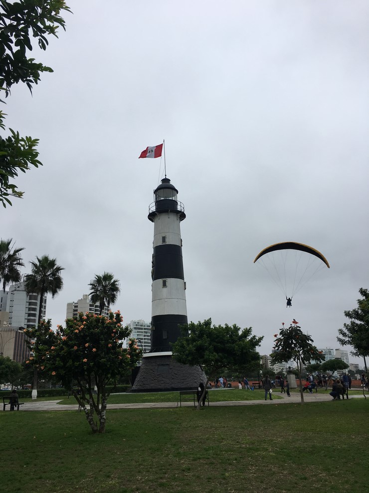 Foi difícil encontrar um táxi na região e eu estava sem internet no celular para pedir Uber. Depois de um tempo conseguimos e fomos para o ótimo Pescados Capitales. Na sequência, andamos pelo malecon de Miraflores até o shopping Larcomar. Pelo caminho tem praças, quadras de tênis e futsal, o farol, esculturas e uma galera corajosa andando de paraglide. É um dos lugares mais legais de Lima.
