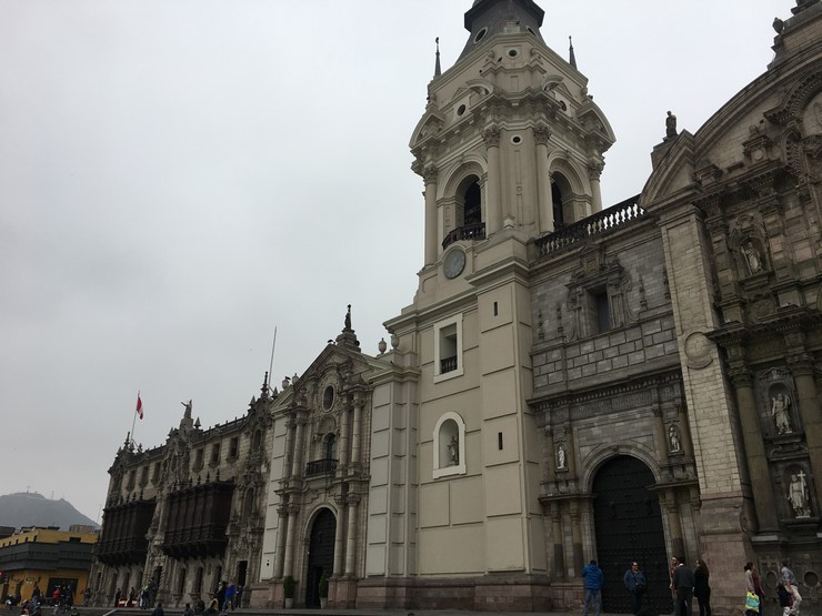 Tivemos mais uma amostra da loucura que é o trânsito de Lima para ir até o centro histórico. Demorou um monte e o carro quase bateu algumas vezes. Dava para ter usado um ônibus que anda em uma faixa especial para chegar mais rápido, mas fiquei um tanto receoso de me perder.