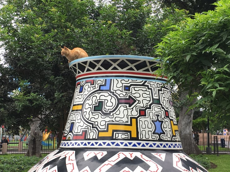 O que mais impressiona no bem cuidado parque Kennedy é a imensa quantidade de gatos. Os felinos estão por todos os lados e recebem atenção de quem passa. O pessoal dá água, comida e tira umas fotos. O parque é deles!