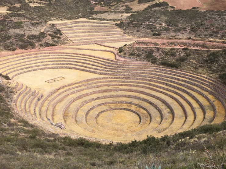 Os círculos de Moray são um exemplo do avançado conhecimento dos incas. Ali eles fizeram experiências agrícolas que foram essenciais para o desenvolvimento da agricultura do Peru. A vista que temos é privilegiada.