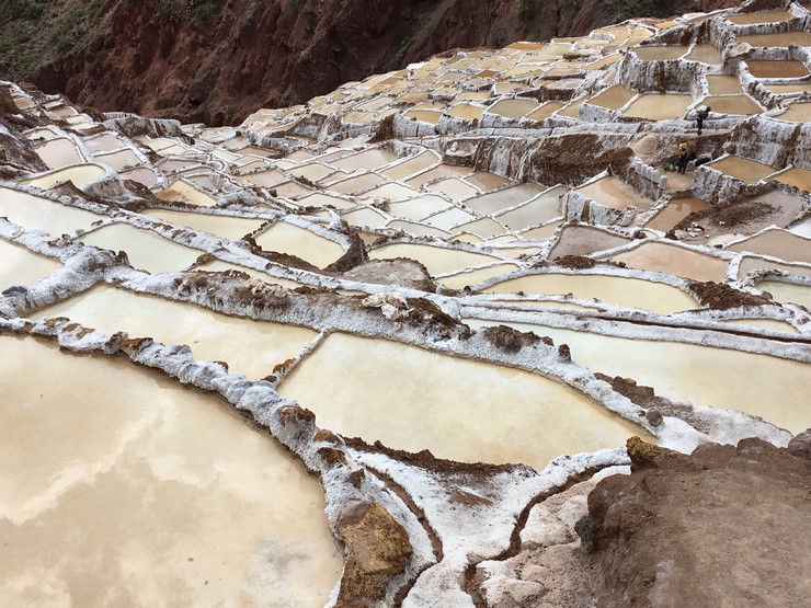 Depois de uma estradinha um tanto difícil chegamos nas salineras de Maras. São milhares de poços que ainda hoje produzem sal. Cada família da região é responsável por um poço. Como elas conseguem encontrar o seu eu não sei.