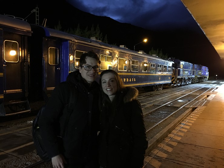 Já cansados, tínhamos ainda que pegar o trem que vai até Aguas Calientes. A viagem demora um pouco, pois o trem vai devagar, quase parando. Infelizmente, não deu para ver a beleza do vale do Urubamba, já que era noite.