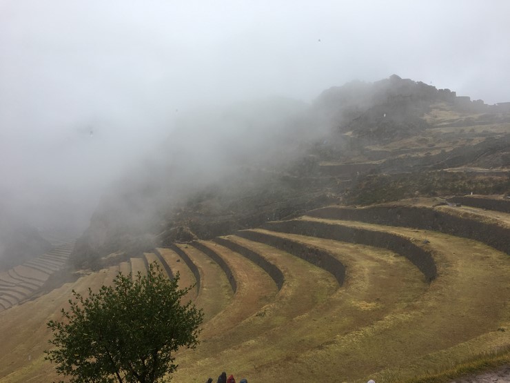 E a visita ao Vale Sagrado dos Incas vai ficando cada vez mais espetacular. É uma pena que esse dia estava chuvoso. Só mesmo curitibanos azarados para pegar chuva em Cusco na época de seca, né? A chuva infelizmente prejudicou nossa ida para Pisac. Deu para ver pouca coisa dessa que é considerada a terceira ruína inca mais importante.