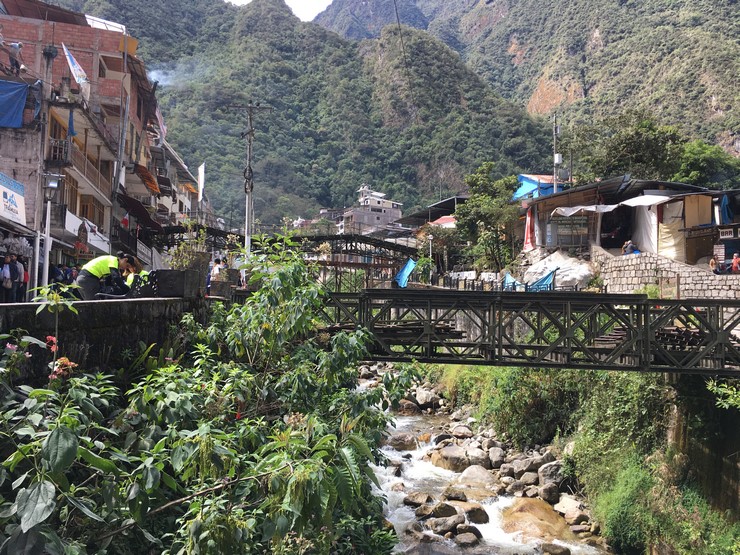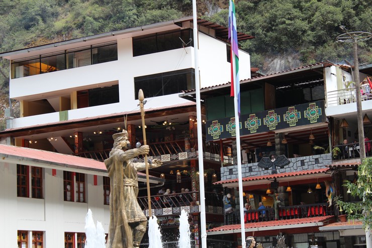 Depois de duas horas chegamos em Aguas Calientes e no fabuloso hotel Casa Andina. É uma pena que ficamos tão pouco tempo hospedados nele, questão de umas 6 horas. Esse hotel tem uma opção de estadia prolongada, o que seria uma boa opção para nós. A visita à Macchu Picchu acaba ao meio dia e nosso trem só sairia no final da tarde. Dava muito bem para ficar no hotel aproveitando a fantástica vista para o rio e descansando. Paciência.