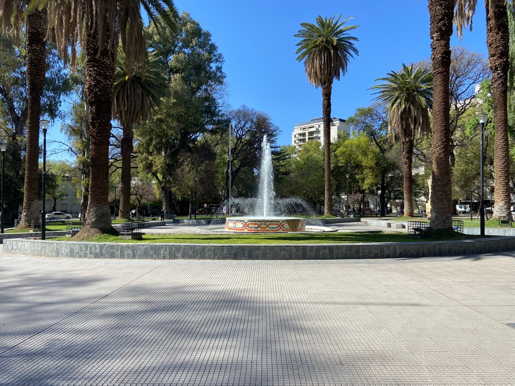 A pé seguimos até a Plaza Independência, que é onde tem o letreiro da cidade e é o local que se inicia uma rua só para pedestres chamada Peatonal Sarmiento. Ali é a tradição tomar café e beber em mesas externas. O povo fica bebendo, fumando e conversando por um bom tempo.