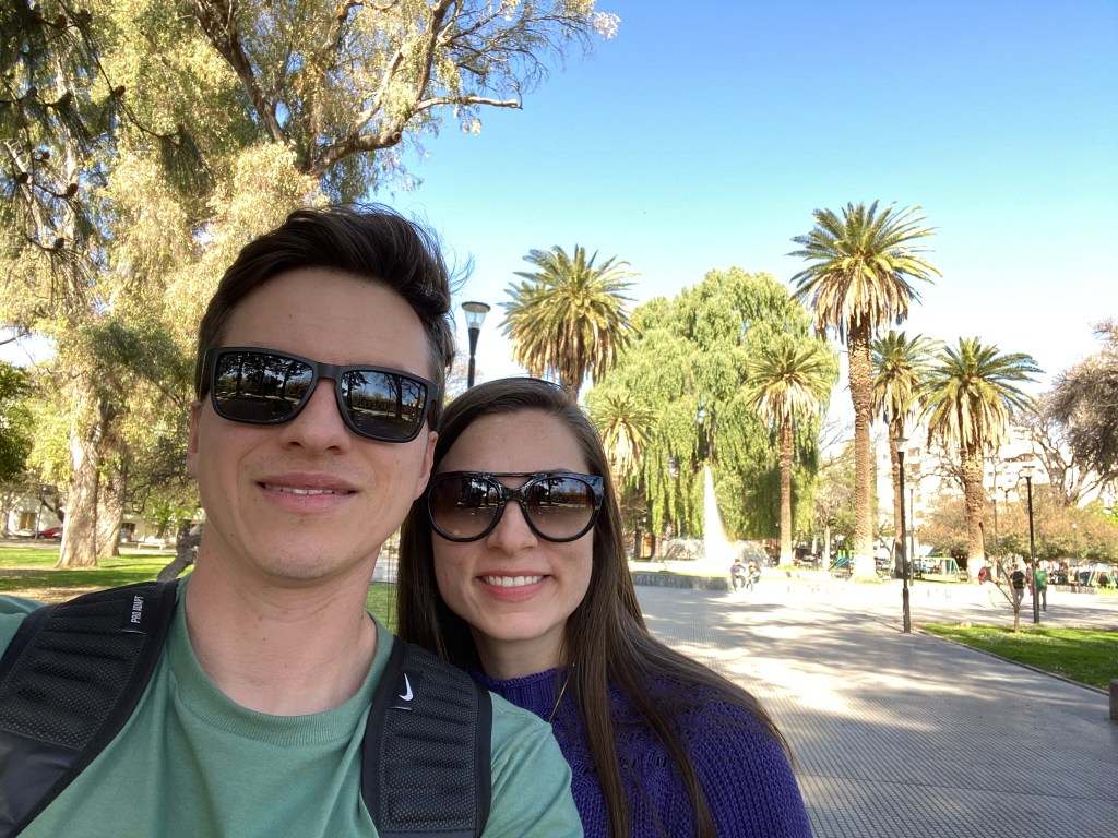 Estávamos iniciando o transfer para Mendoza e, na rua fora do hotel, vimos uma moto se aproximando pedindo para a gente parar. Logo percebemos que era o gerente do hotel. Ele estava trazendo o celular da Flávia. É que ela tinha esquecido dentro do quarto. Os caras eram gente boa demais!