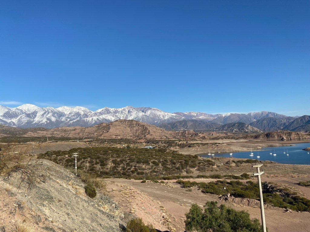 A primeira parada foi a represa de Potrerillos, que rende imagens impactantes. É um espaço enorme cheio de água com a Cordilheira dos Andes ao fundo. Um belo contraste.