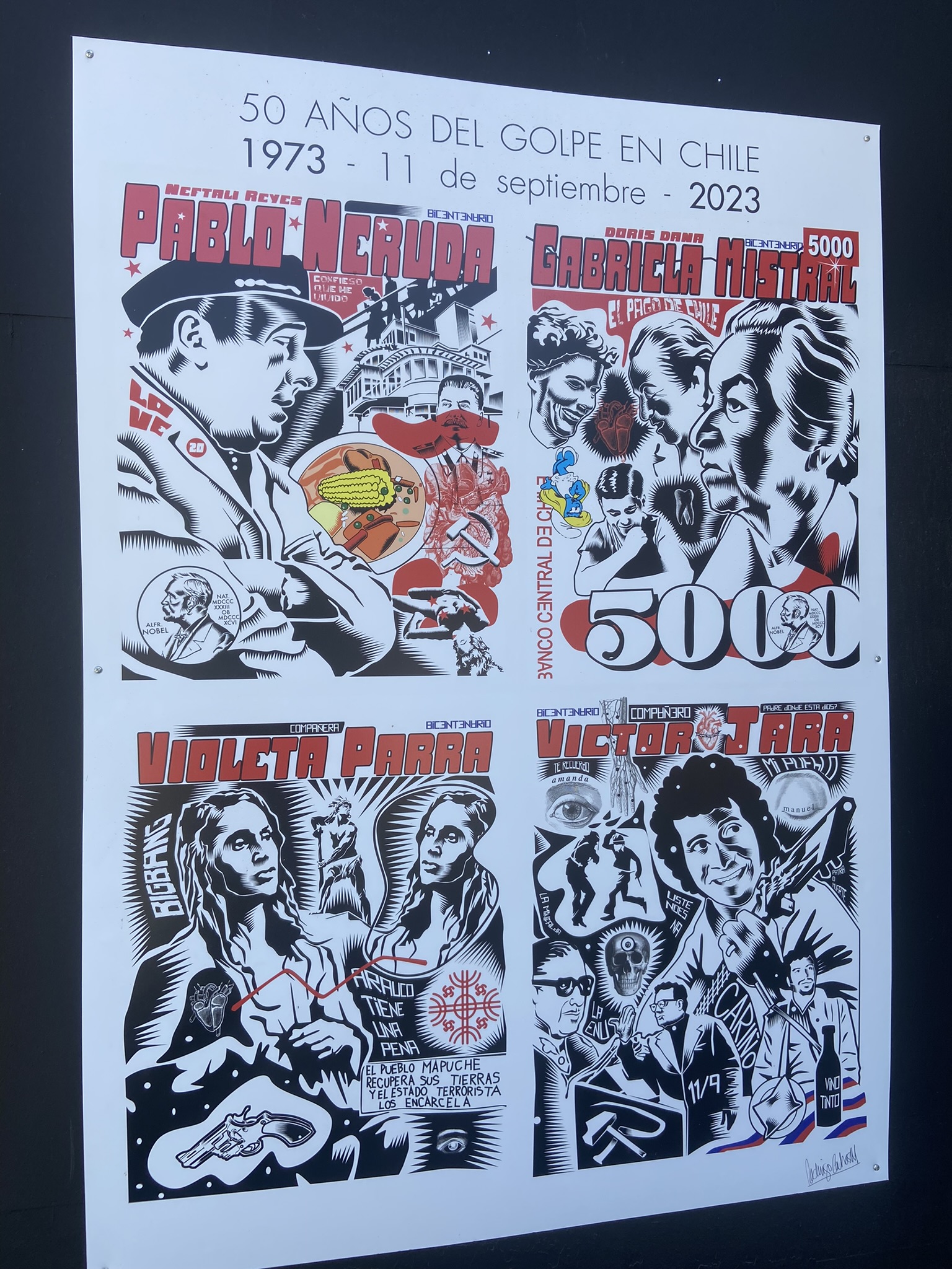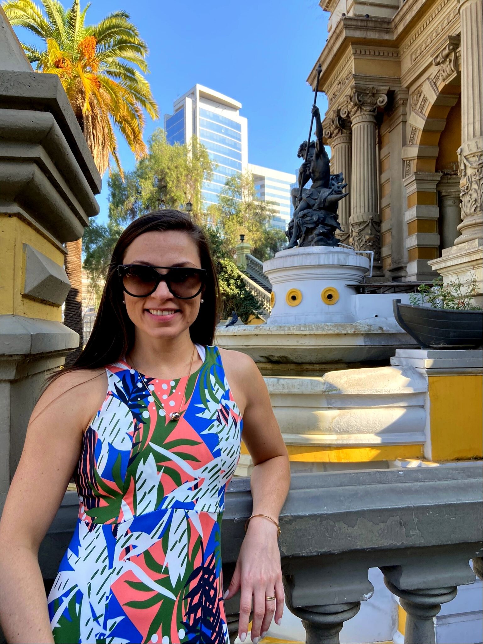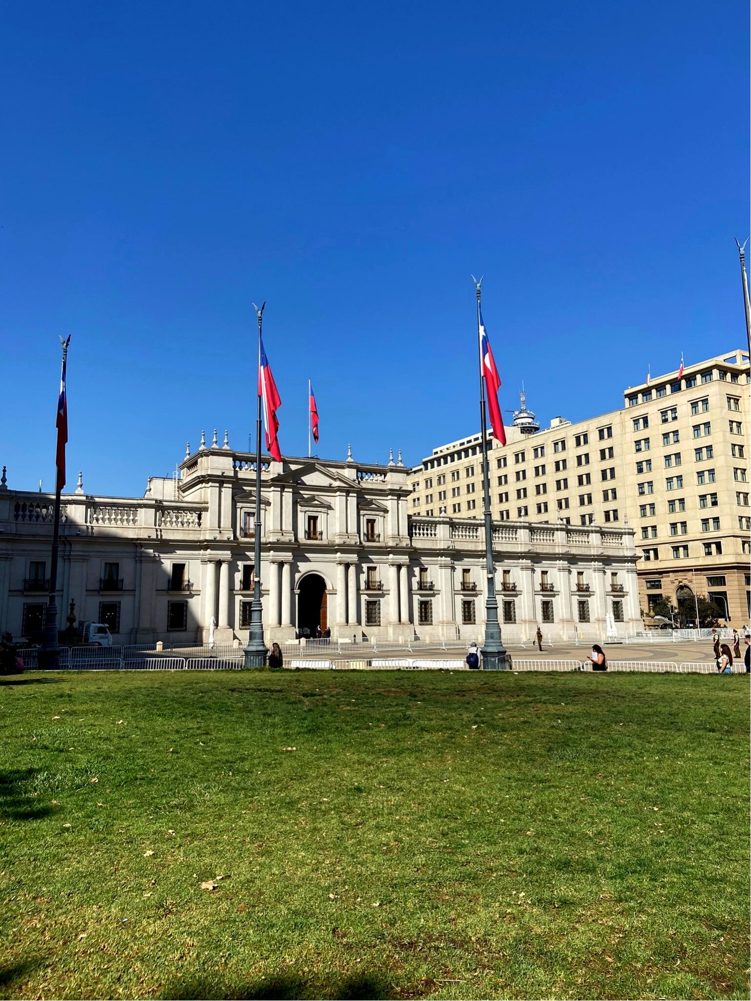 - Precisávamos comprar alguns pesos chilenos e para isso fomos até a JM Agustinas. Pelo caminho, vimos um protesto enorme. Aproveitamos e demos uma espiada no La Moneda, sede da presidência.