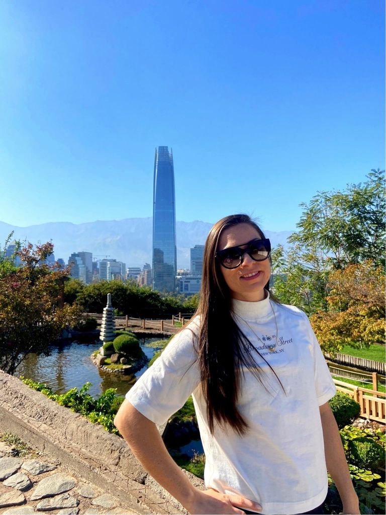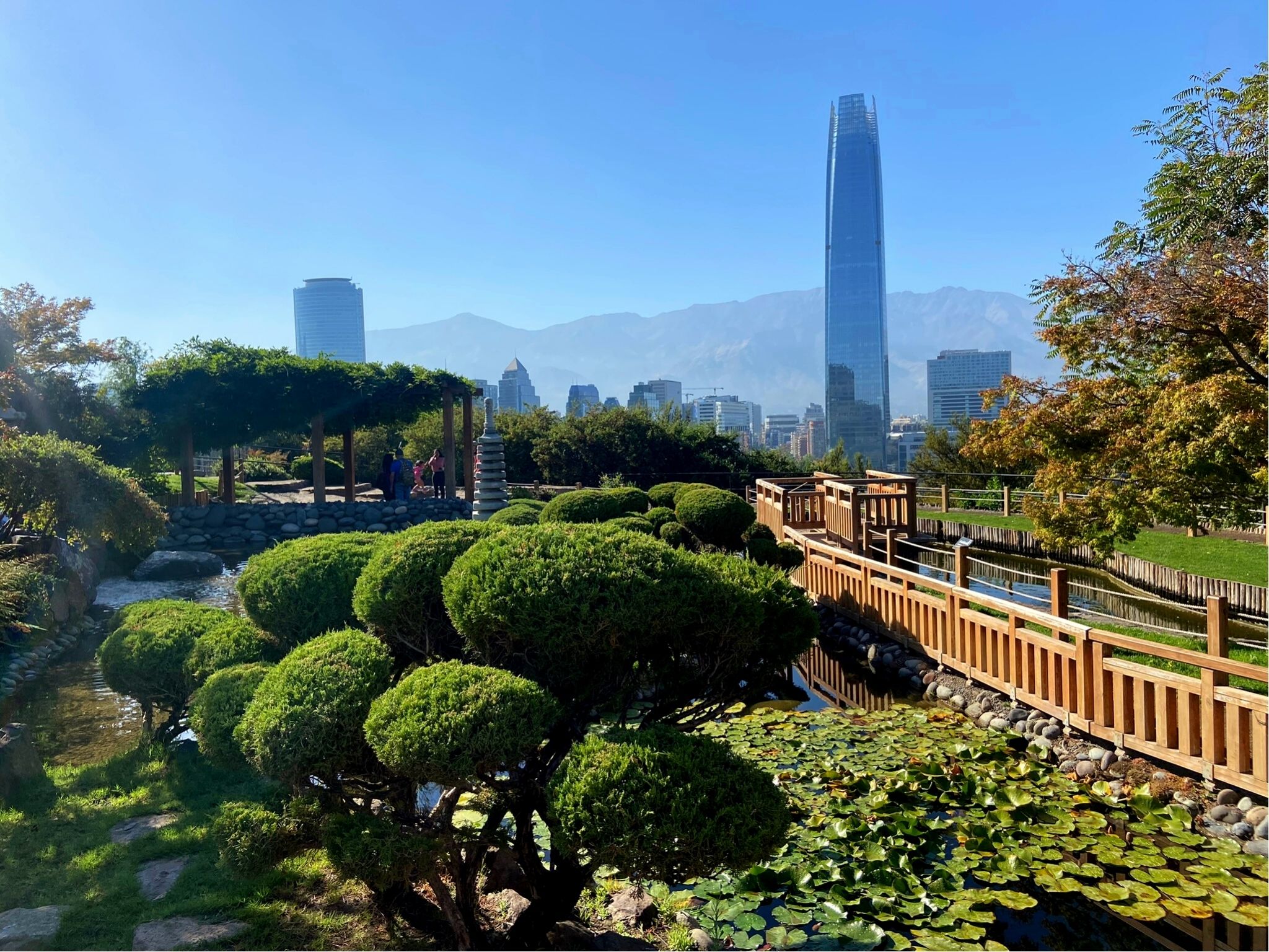 - Desta vez entramos no Cerro San Cristóbal pelo teleférico. Chegamos logo na hora de abrir e antes de subir não resisti e comprei uma nostálgica crush laranja, um dos refrigerantes que mais tomei na infância. O teleférico é fechado e sobe o morro com suavidade e oferecendo belos ângulos da cidade. A primeira parada é próxima a uma piscina pública. Descemos o morro até chegar no jardim japonês, que é pequeno mas tem sua beleza. Pudemos observar a grande quantidade de chilenos utilizando o morro para praticar seus exercícios, principalmente bike e caminhada.
