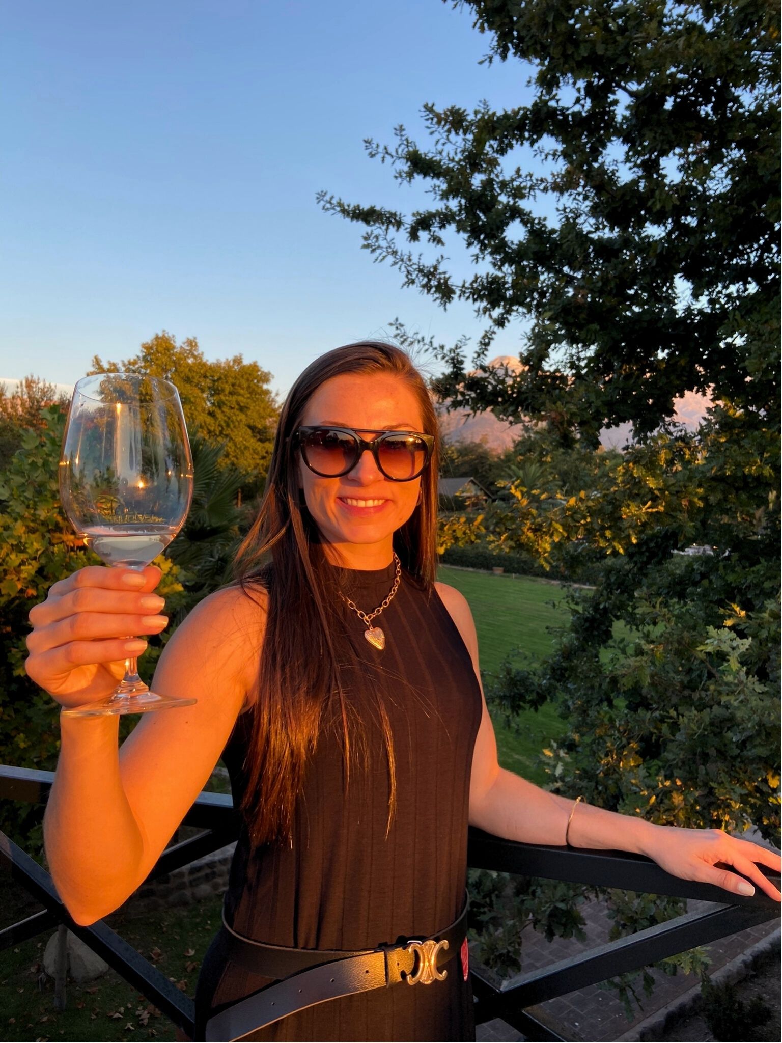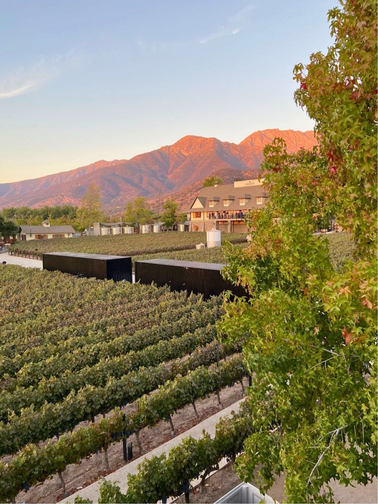 - Destaco a oportunidade de comer algumas uvas vitis viniferas direto do vinhedo e tomar um vinho chamado Naranjo com o por do sol de fundo. Eles também serviram um Carmenere interessante em meio a tonéis de madeira.
