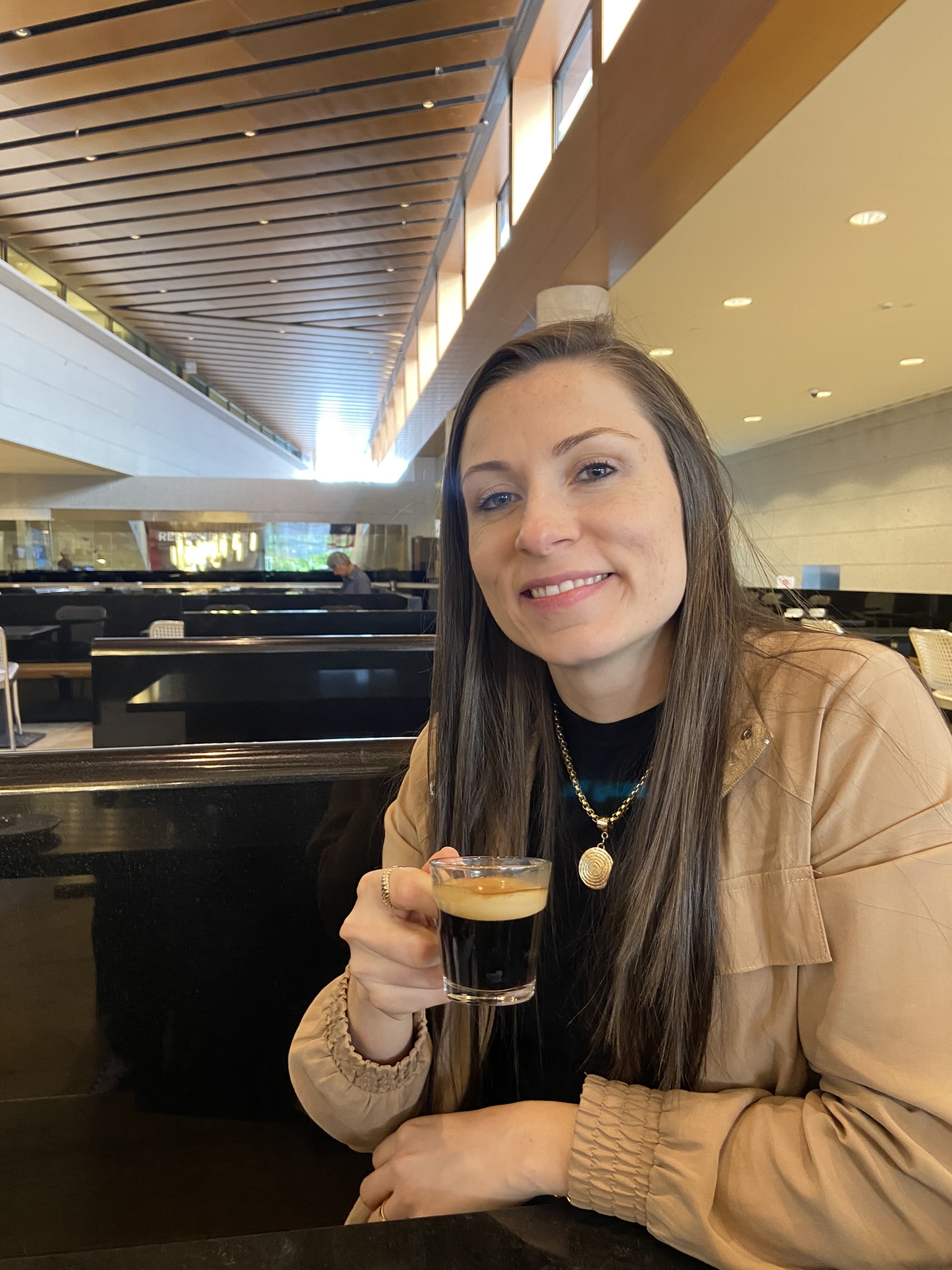 - O abençoado Google Maps nos deu uma luz: havia um starbucks duas quadras para baixo e ele tinha acabado de abrir. Um tanto a contra gosto rumamos para esse grande exemplar do imperialismo norte-americano e nos surpreendemos. Não é que em Madrid os cafés do starbucks são realmente bons? E as comidas também. A Flávia mandou um sanduíche de ovo (dalhe proteína!) que de acordo com ela foi um dos melhores que ela já comeu. Carregamos nossos celulares, descansamos um pouco e enchemos nossos organismos de cafeína. E logo já era 9 horas e podíamos fazer o check-in para iniciarmos nossos passeios.