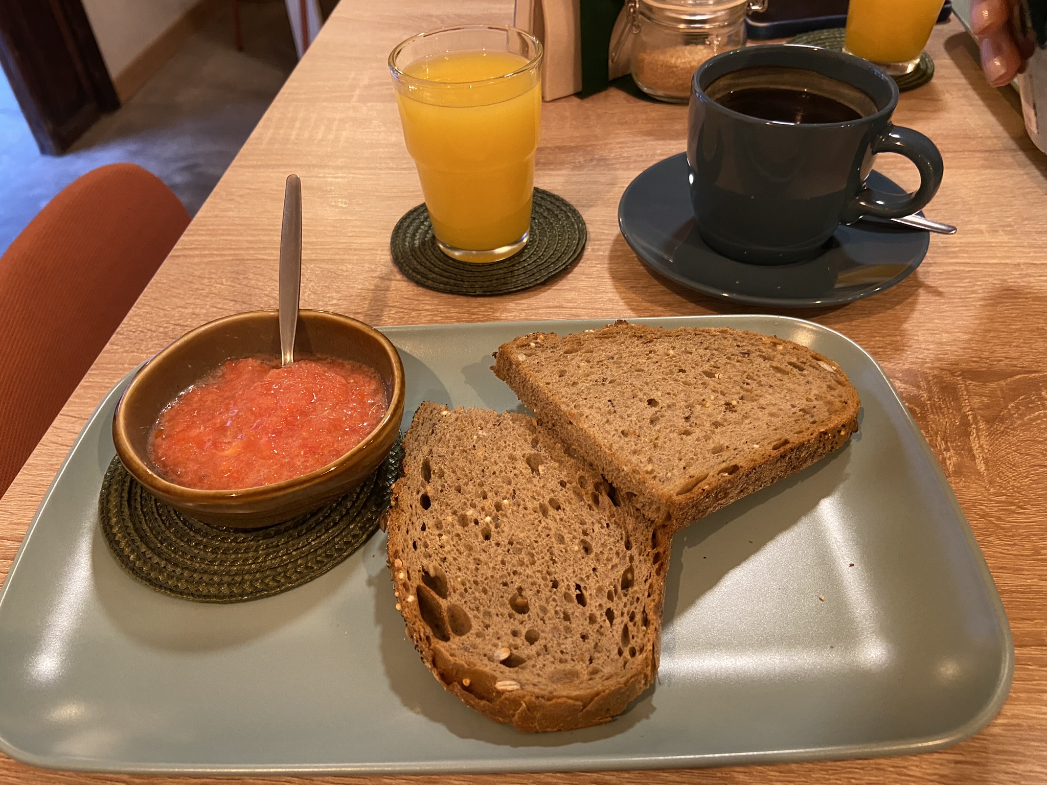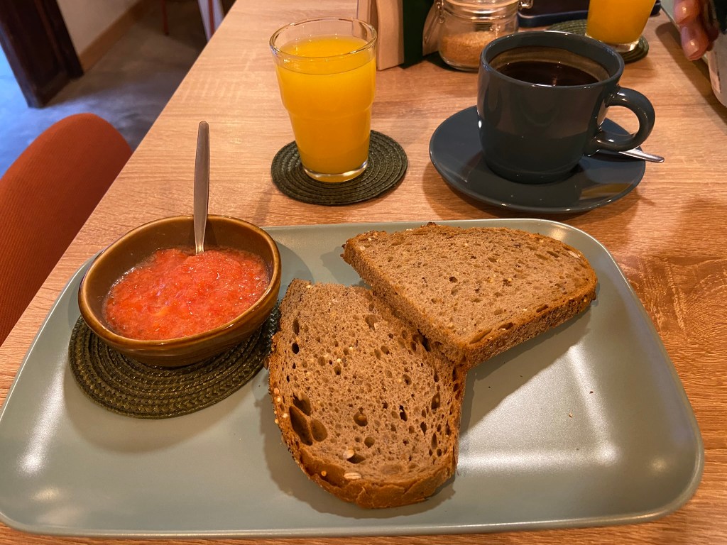 - Eu queria muito experimentar o clássico pão com tomate e o Xinco nos ofereceu uma ótima experiência. Além disso, ele tinha um café de qualidade e o dono (ou gerente?) nos deu umas bolachas de brinde depois de pedirmos mais uma dose de café. E pudemos treinar nosso espanhol um pouquinho.