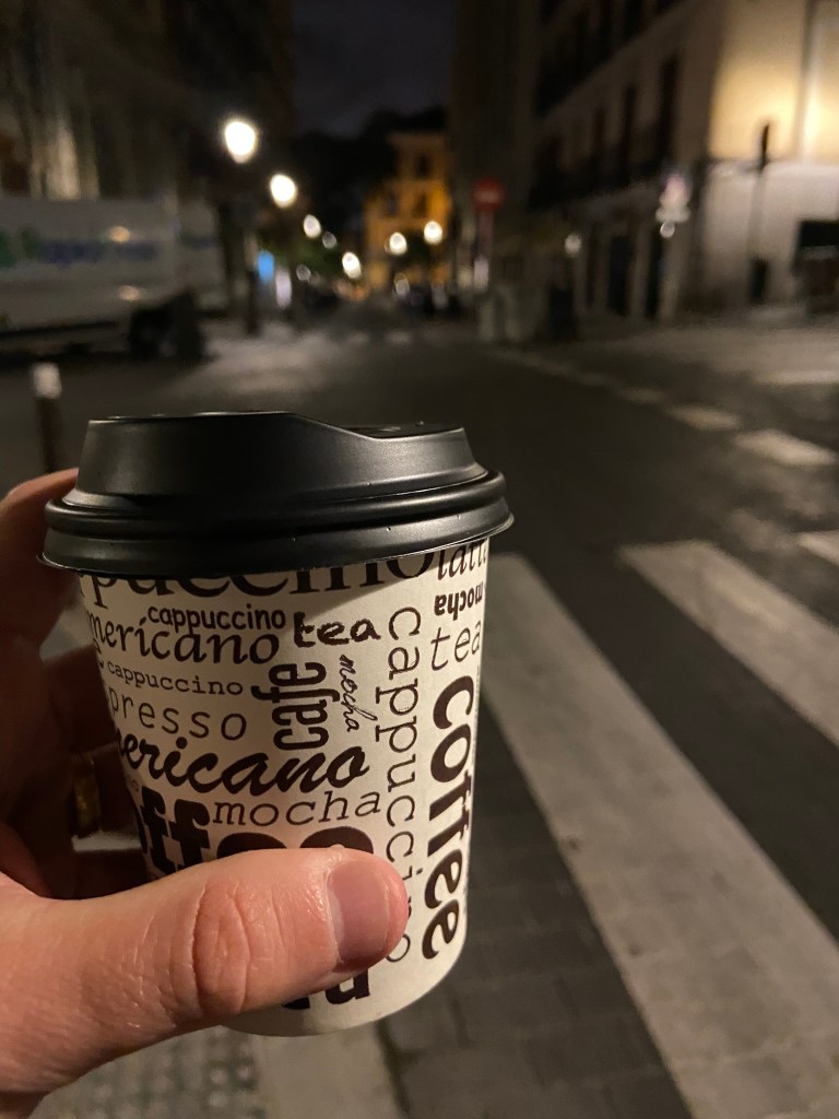 - Era 7 da manhã e o dia ainda era “noite”. A cidade como um todo parecia adormecida, exceto pelo grande número de pessoas correndo pelas ruas. Estávamos nos acostumando com a ideia de estarmos em Madrid e aí começamos a pensar sobre o que fazer até as 09 com as bagagens nas mãos e praticamente nada aberto à nossa volta.