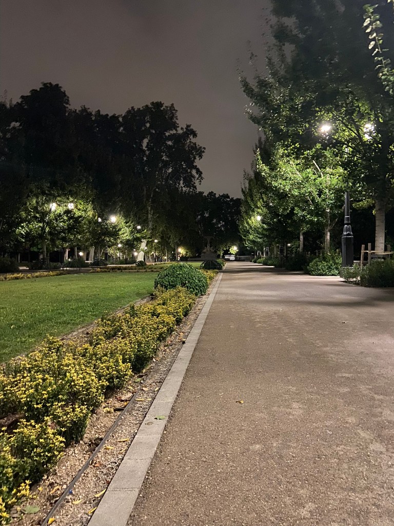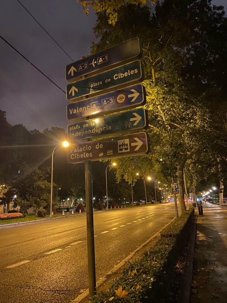 - Esse dia caí da cama mais cedo do que o normal e resolvi sair andando por Madrid na madrugada/manhã. Peguei um café raiz ao lado do hostal e fui em direção ao Parque del Retiro. Tudo escuro, temperatura agradável e na rua só algumas pessoas correndo, poucos carros também. Fui escutando Arde Bogotá e no caminho me deparei com a placa da estrada A3. Coincidência agradável. Foi bacana ver a cidade bem vazia assim.