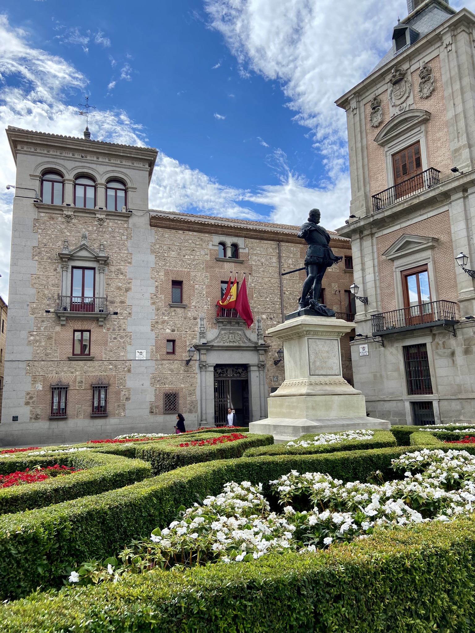 - Próximo dali estava a Praça da Vila, um lugar simpático e realmente bonito. Uma praça pequena, organizada, com flores e edifícios históricos. Demos uma passada rápida no Mercado de San Miguel e percebemos como o lugar fica bizarramente lotado. Se era difícil caminhar imagina sentar em algum lugar para comer. Mas verdade seja dita, tinha bastante opções bem apetitosas por lá.
