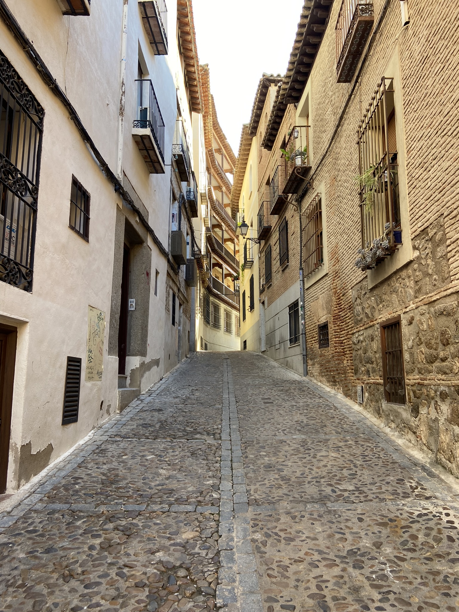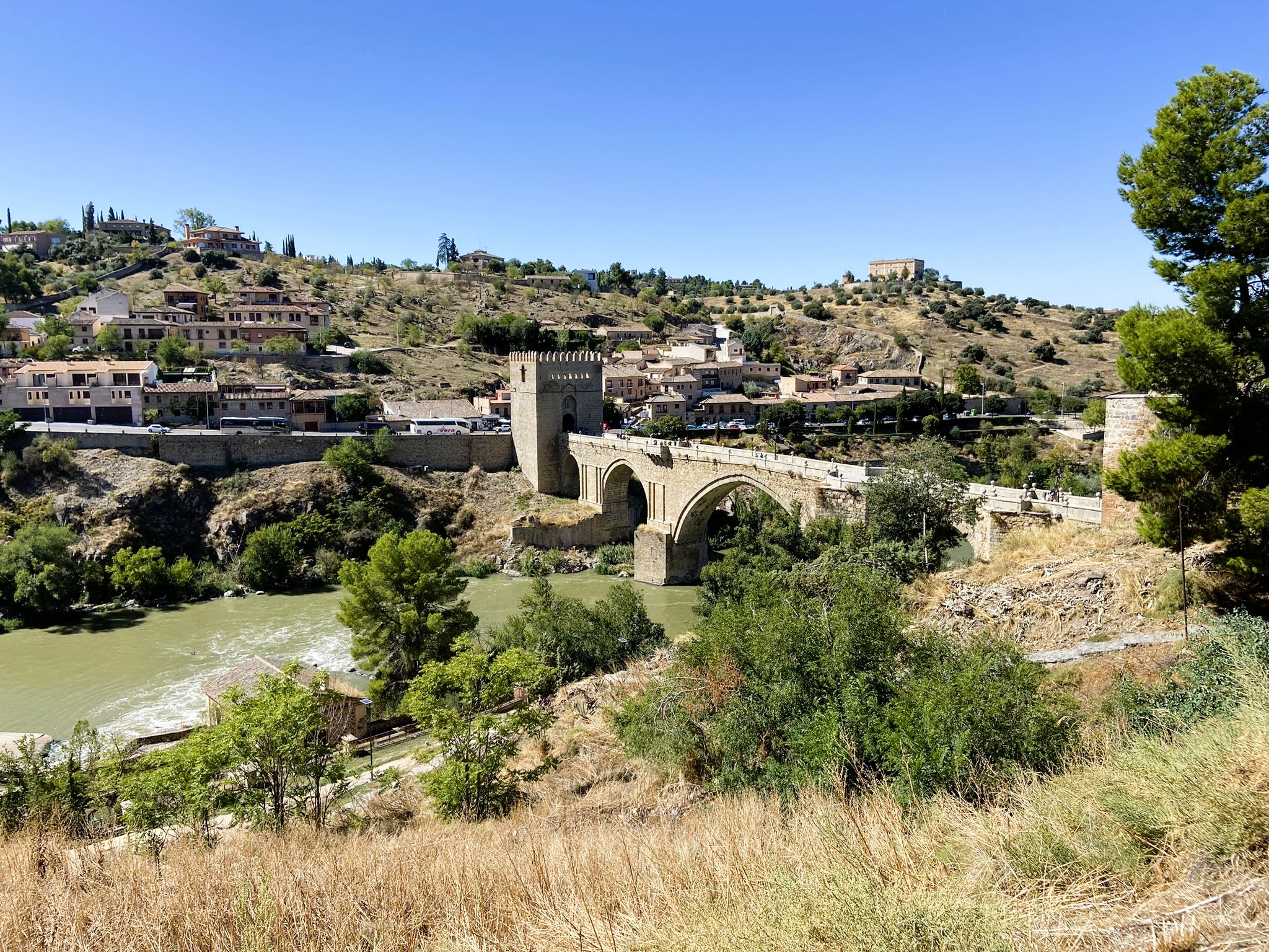 - E aí fizemos o passeio que mais me marcou na cidade. Saímos por uma porta de trás e contornamos a pé todo o casco histórico por fora. Pelo caminho, fomos brindados com vistas privilegiadas do coração de Toledo e do rio Tejo. Era um percurso um tanto longo, mas agradável, com vários mirantes para sentar e admirar a cidade de diversos ângulos.