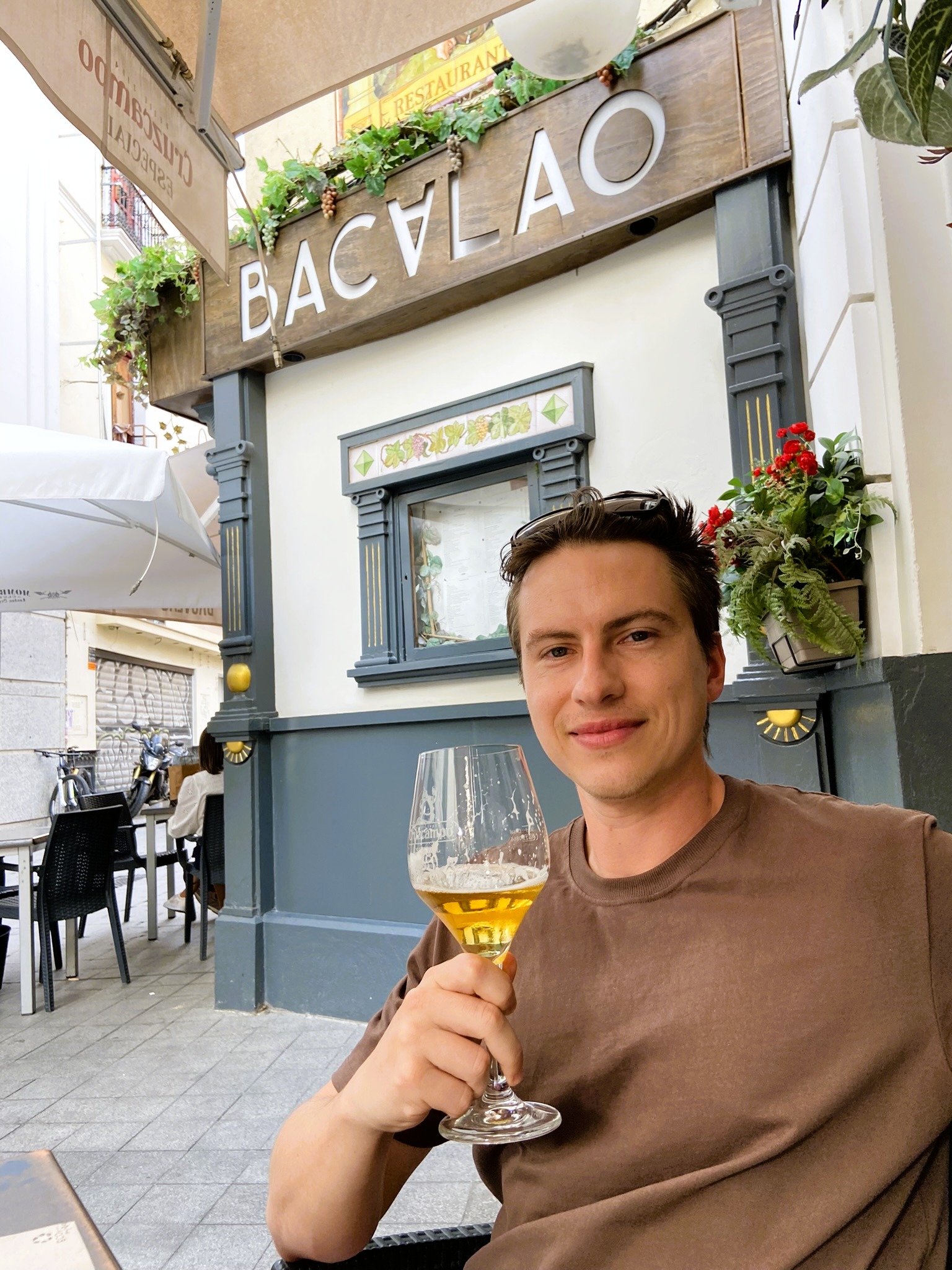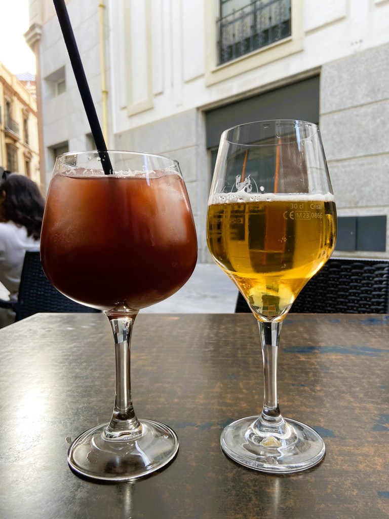 - Não é fácil encontrar um bom lugar para comer sem reserva na Espanha, mas conseguimos sentar no lado de fora em um restaurante italiano que tinha um macarrão saboroso. Tinha anchova, alcaparras e azeitona preta, mas eu gostei haha (paladar adulto que fala?).