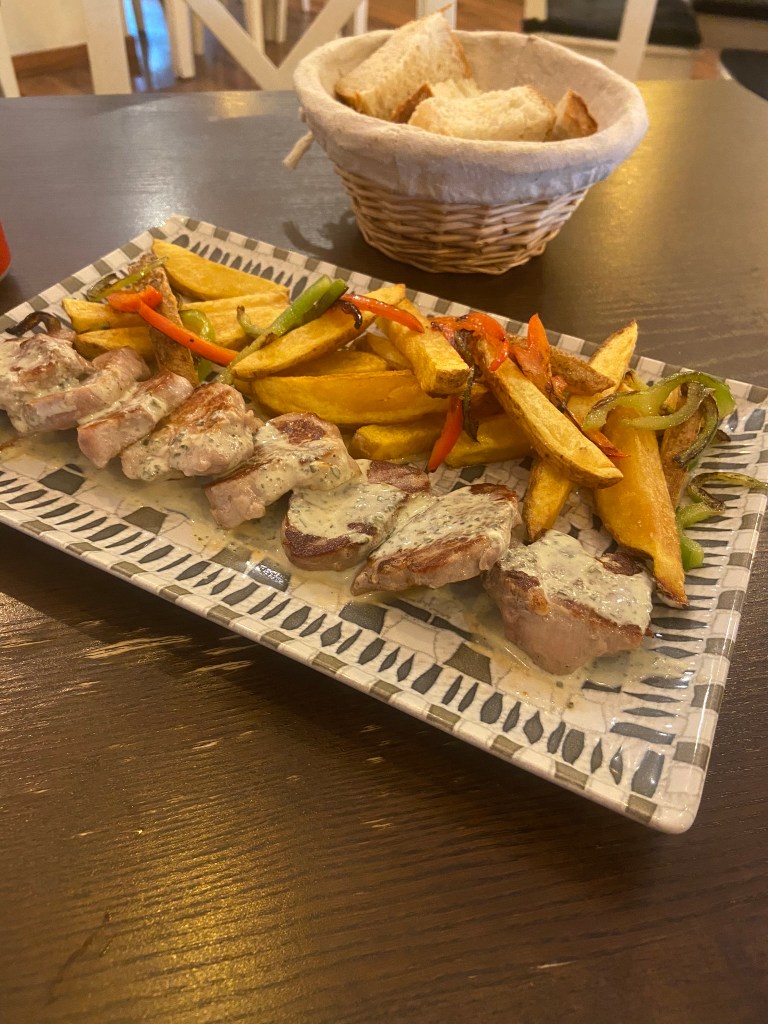 - Almoçamos em um restaurante simples e bom que ficava próximo ao hotel chamado El Perro Canalla. Lá experimentamos o solomillo de cerdo, que seria basicamente o lombo do porco. Estava saboroso, mas pelo o que me lembro a quantidade não era das mais generosas.