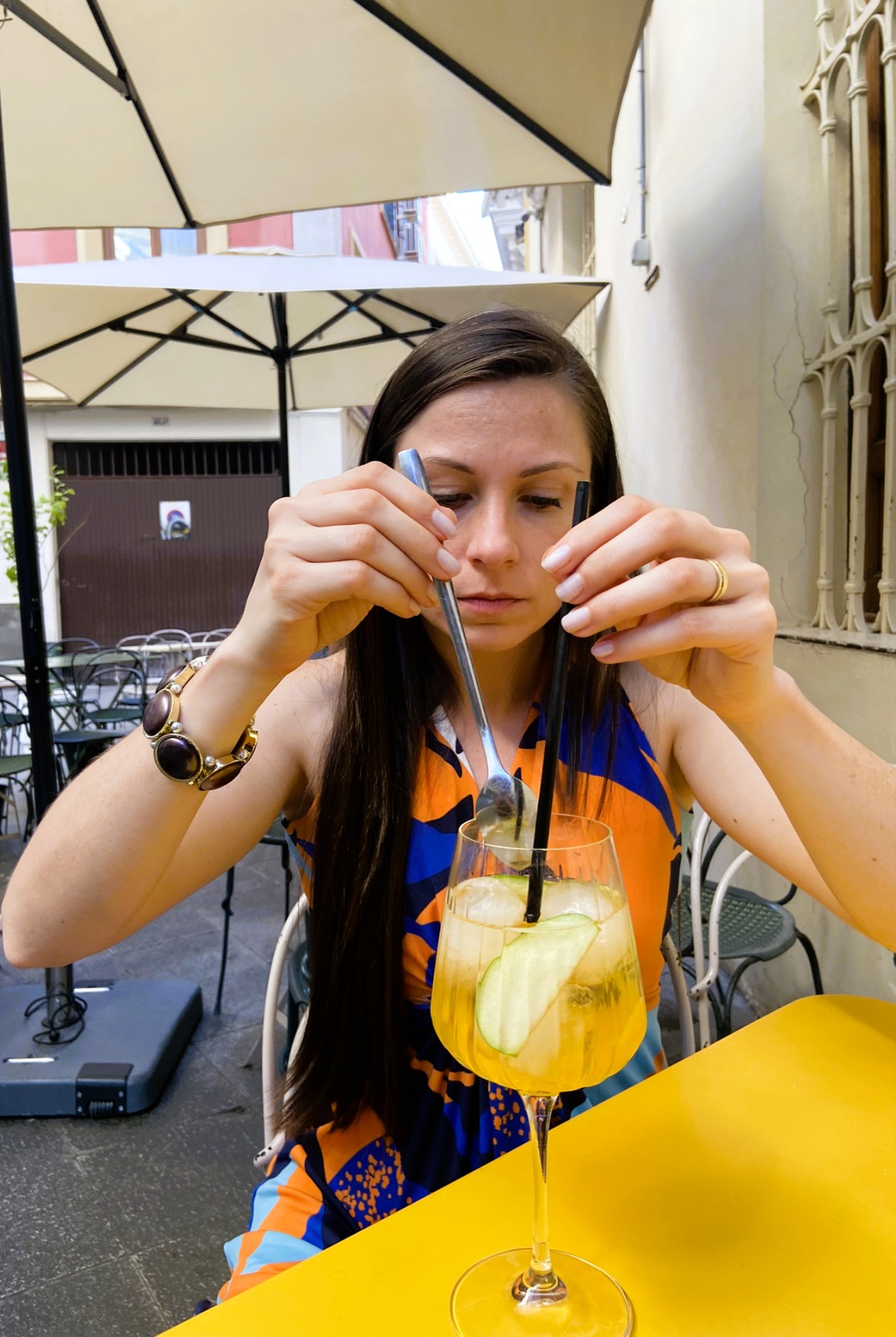 - Se tem uma cidade que combina com jantares em mesas do lado de fora essa se chama Sevilla, ainda mais quando vem uma refrescante brisa em nossa cara (o que não era tão comum hehe). Mas lá tem um clima diferente, uma energia boa. Nesse momento acho que finalmente senti que estava de férias de fato e de que nosso objetivo primordial era relaxar.
