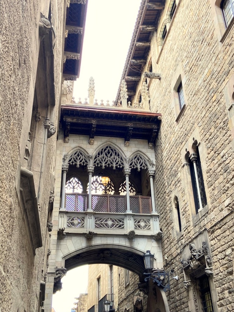 - Depois de quase regurgitar o big mac graças a direção agressiva de um taxista fizemos check-in no hotel e fomos conhecer o famoso bairro Gótico. Ele é cheio de construções antigas, ruelas bem estreitas e muitos turistas.