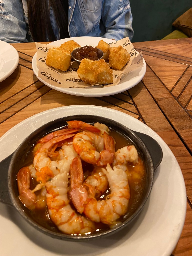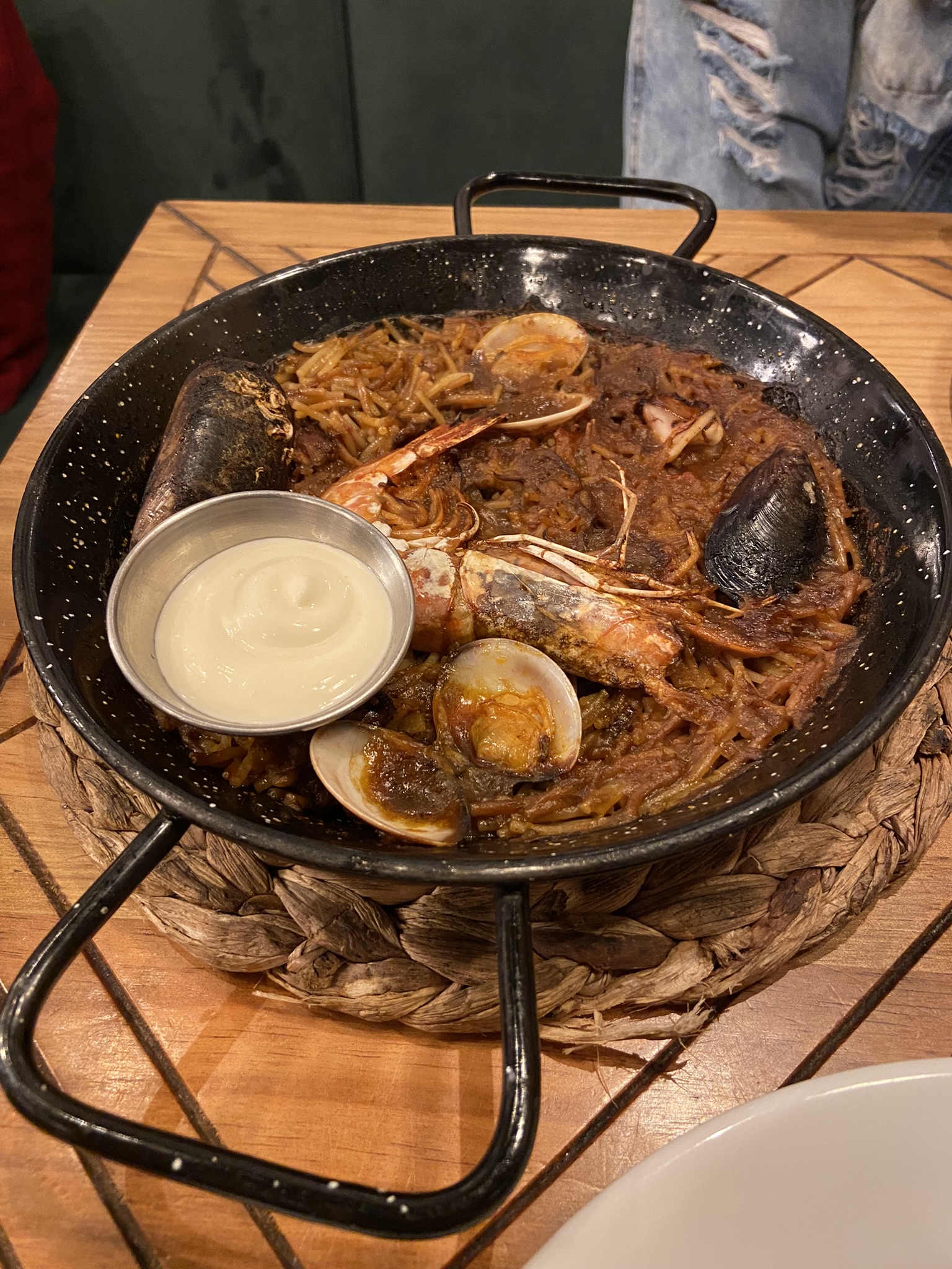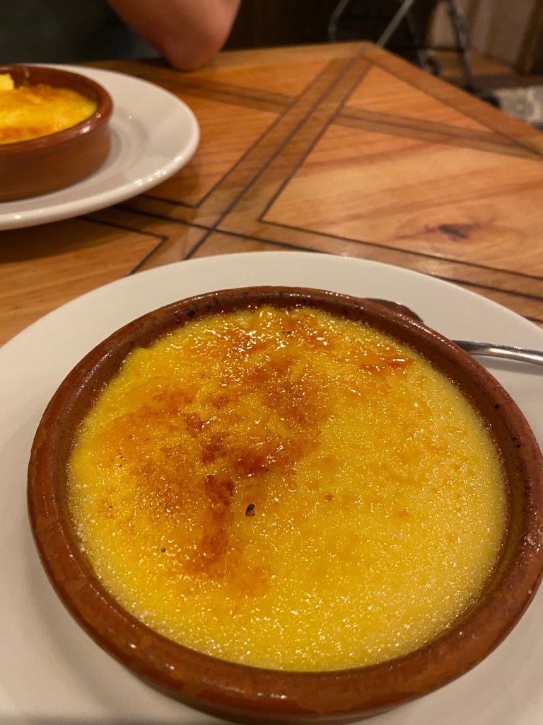 - À noite jantamos no Sagradas Tapas, um dos destaques gastronômicos de toda a viagem. O atendimento é naquele ritmo peculiar de Barcelona, mas a comida é diferenciada. Pedimos brie rebosado, fideua e camarão e todos estavam ótimos. Pra fechar, a fantástica crema catalaña de sobremesa. Esse restaurante mereceu um 9/10.
