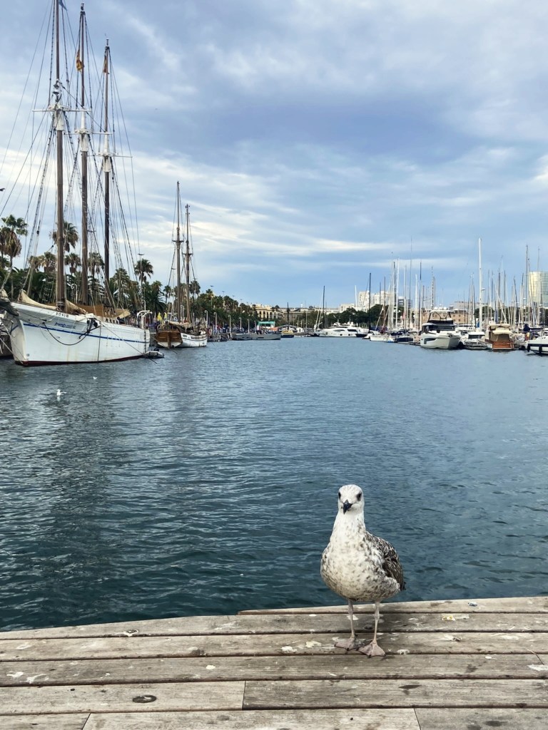 - Andando chegamos até a Barceloneta, a praia de Barcelona feita pelo homem. O caminho é bem agradável, apesar de estar cheio de gente e de pombos dando rasantes em nossas cabeças próximo ao porto. O mar não chama a atenção, mas a região tem uma beleza diferente que vale a pena conferir.