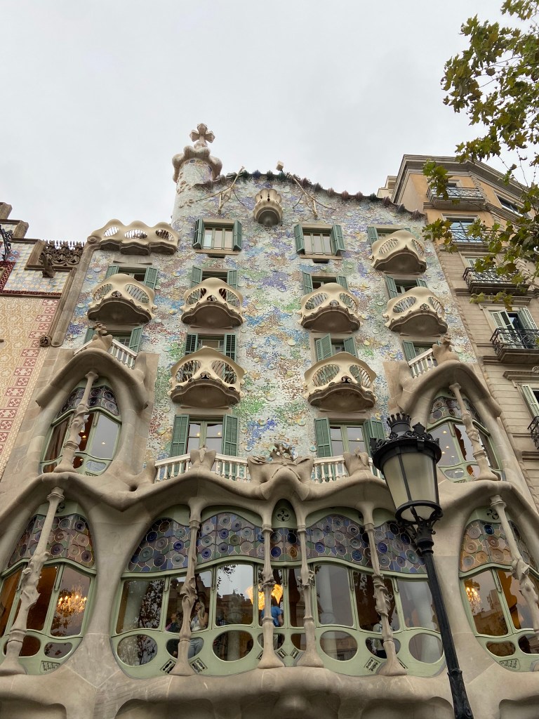 - O tempo estava virando e parecia que iria chover. Fomos em busca de duas das mais conhecidas casas planejadas por Gaudi: Batllo e Mila. Elas não ficam muito longe uma da outra e pudemos observar suas peculiares fachadas que representam o modernismo catalão. Acho que preferi a casa Milá, também conhecida como La Pedrera. Refletimos sobre entrar ou não nelas – considerando o salgado preço em Euro – e decidimos admirar pelo lado de fora e ver vídeos no Youtube de quem entrou nelas. O bolso agradeceu!