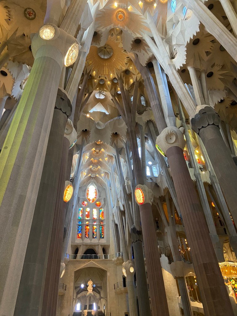- As torres da Sagrada Famíla são altas, mas não maiores que o ponto mais alto de Barcelona: o pico de Montjuic. Isso se deu justamente porque Gaudi não queria que a obra do homem ultrapassasse a da natureza. Aliás, é incrível como ele se inspirou na natureza para criar. O espaço chamado bosque dentro da igreja é um exemplo disso, com as torres se abrindo como galhos de árvores e dando vida a corredores que transmitem paz e tranquilidade. Gaudi dedicou anos da sua existência para a Sagrada Família e deixou instruções para ela ser finalizada. E como não podia deixar de ser, escolheu ser enterrado lá mesmo. Eu diria que tudo envolvendo ela é mágico.