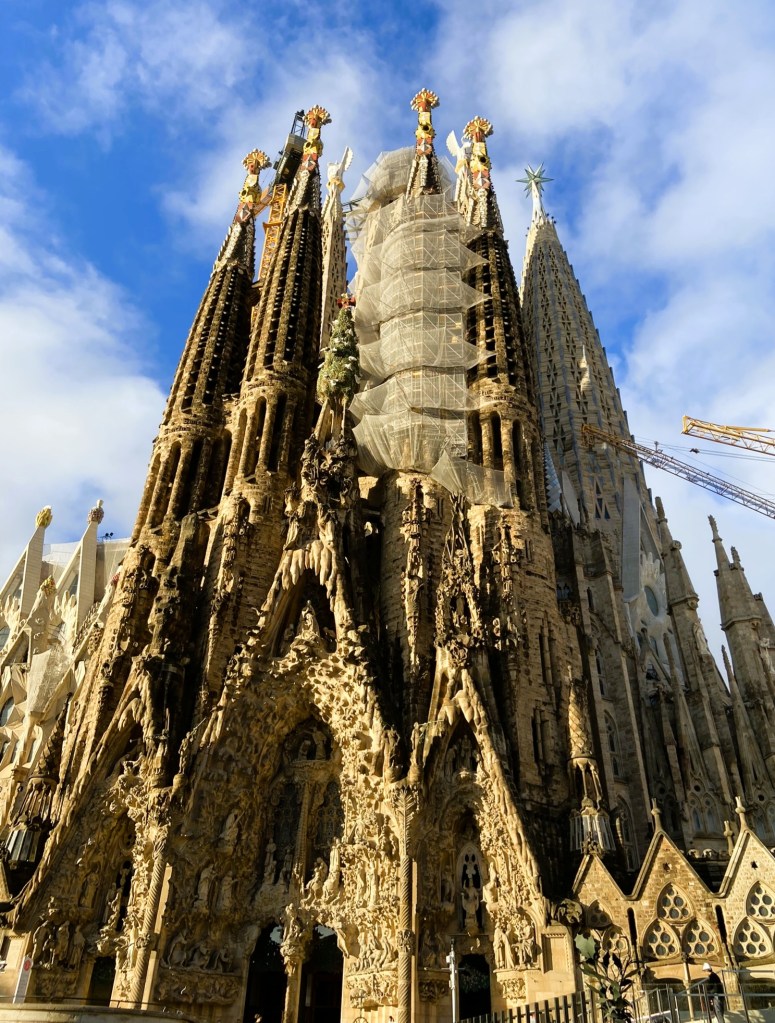 - A manhã foi dedicada a Sagrada Família, a obra-prima de Gaudi. Eu que não sou religioso me impressionei com cada detalhe e cada ideia transmitida nessa monumental igreja. De um lado uma fachada representa o nascimento de cristo e do outro a paixão, o que faz dela um enorme símbolo de toda uma religião. Essa é uma visita em que o audioguia é imprescindível para nossa imersão e aprendizado.