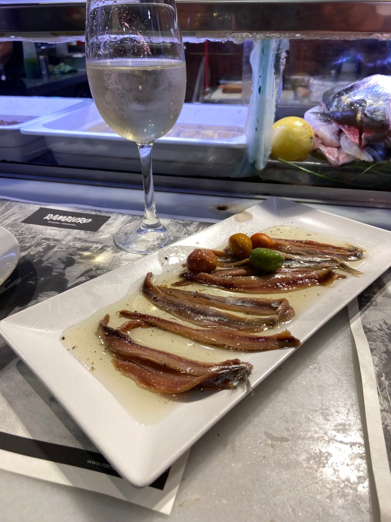 - Se comer no mercado de Madrid era impossível pela absurda quantidade de turistas, o la boqueria tinha um movimento mais normal. Escolhemos um restaurante, sentamos e fomos degustando cavas, cervejas e tapas sem pressa. Fui corajoso e experimentei uma anchova que é considerada a melhor da região. Pra mim, segue tendo um sabor difícil haha