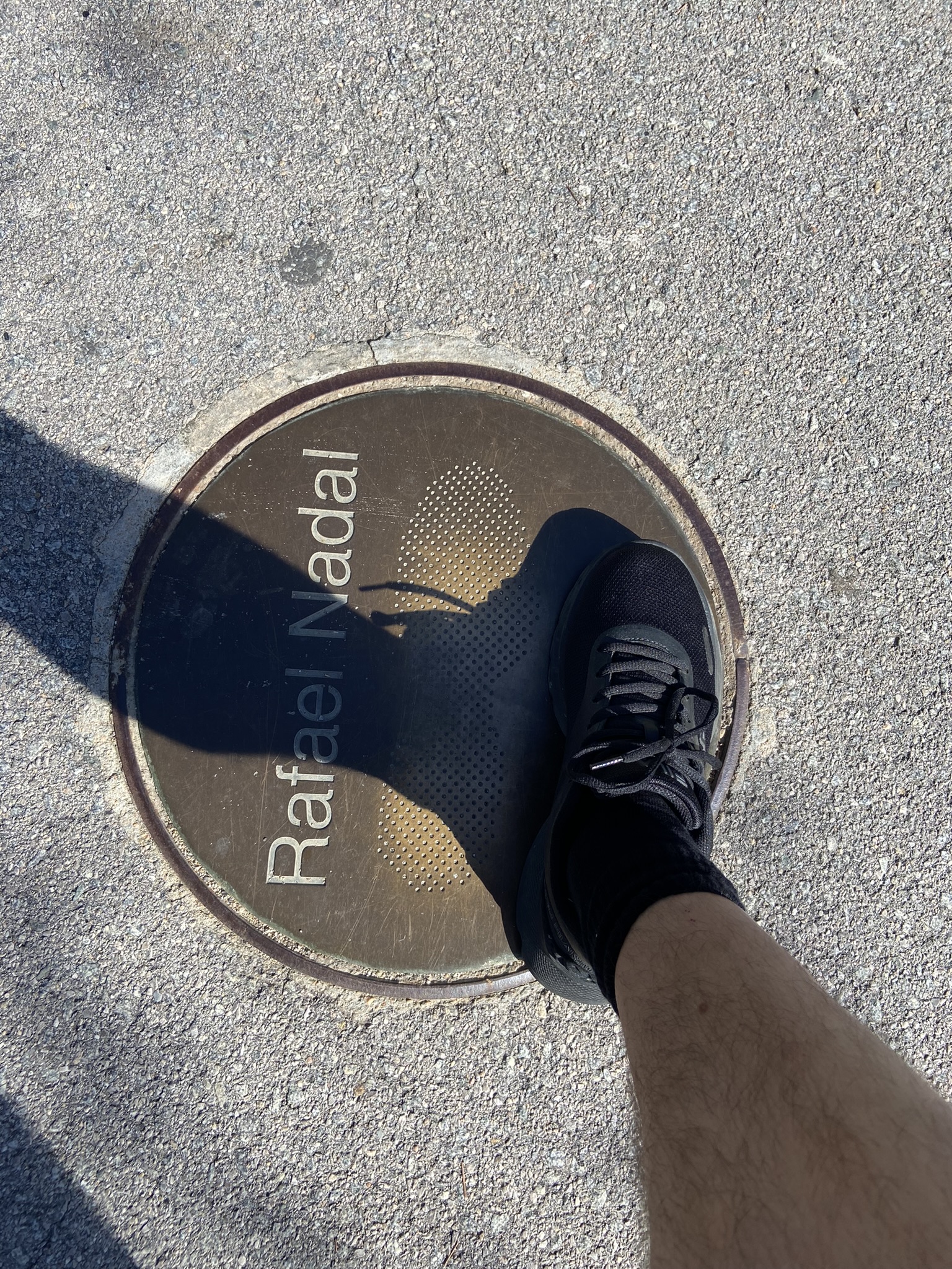 - Ali perto tem tipo uma calçada da fama e lá encontrei as marcas do Nadal e do Federer, que tal?