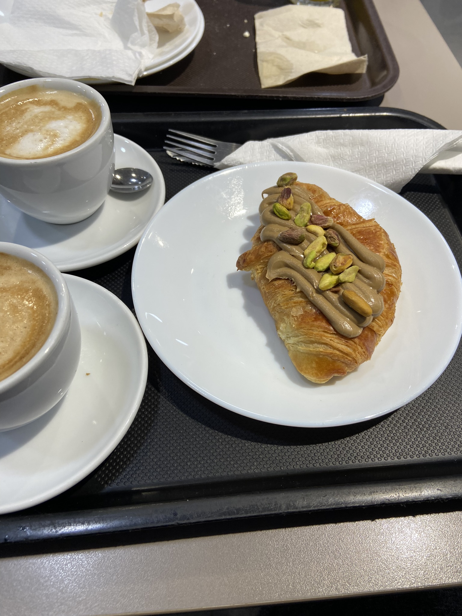 - Ah sim… e de manhã mandei o maravilhoso croissant de pistache em um café ao lado do hotel. Comi vários desse durante nossa estadia.