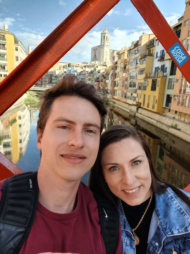 - Chegou o dia do bate e volta até Girona e lá estávamos na estação de trem de Barcelona um tanto perdidos procurando a plataforma certa. Costumo ser bom nesse tipo de coisa, mas as informações dos nossos bilhetes simplesmente não casavam com o que víamos no telão. Não havia outra opção: perguntar para os funcionários. Um senhor de cabelos grisalhos me explicou que a plataforma certa era aquela que tinha como destino final Lyon e Girona seria a primeira parada. Faz sentido, né? Mas o fato é que no nosso bilhete a rota parecia outra. De qualquer forma, confiamos no funcionário e obviamente ele estava certo. Nos aconchegamos nos nossos lugares e em menos de 1 hora já descíamos em Girona.