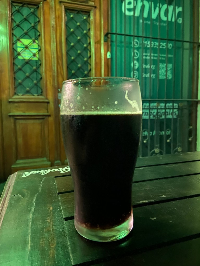 - Não sei exatamente o porquê, mas eu estava sedento por uma guinness e encontrei uma no Saint Patrick Irish Pub. Para acompanhar, fomos com as tradicionais empanadas. Ficamos em uma mesa na calçada, próximos de uma galerinha que fumava um cigarro atrás do outro. E também foi curioso notar a grande quantidade de pessoas no bar vizinho acompanhando e vibrando com um jogo do Brasil nas eliminatórias. Durante o intervalo entre o primeiro e segundo tempo pudemos perceber que a playlist do bar era bem boa. Pena que depois de 15 minutos a cacofonia voltou.