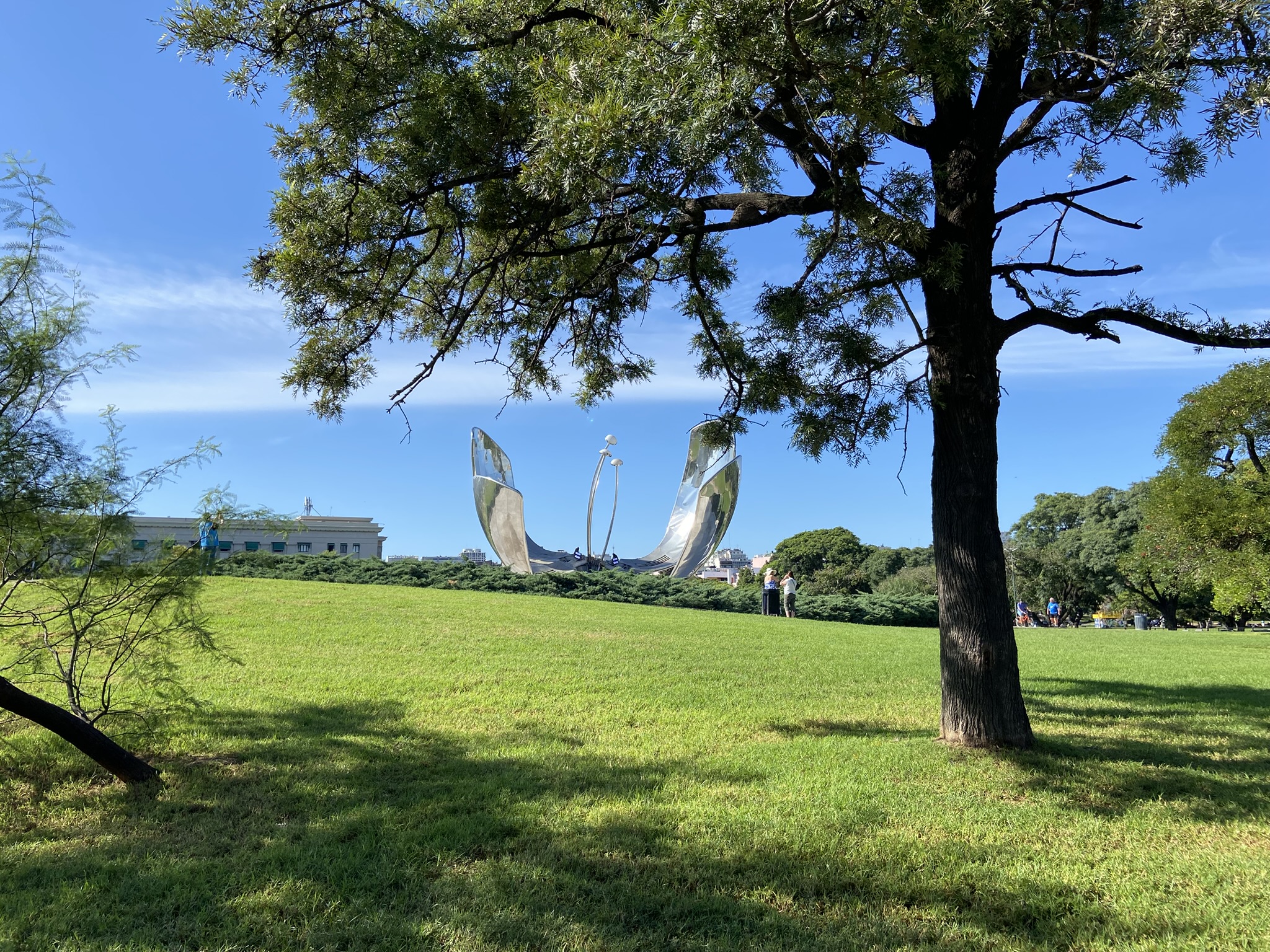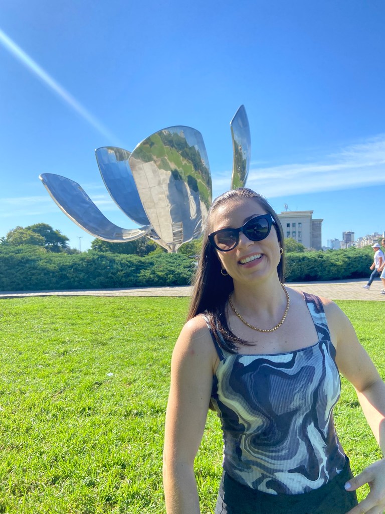 - Sem compromisso com horário andamos tranquilamente até a região da Floralis Genérica. Antes tiramos umas fotos na fotogênica escadaria da faculdade de direito. Não havia tanto movimento na Floralis, mas o que estava pegando era o calor. Nos escondemos um pouco do sol e observamos essa fascinante estrutura de metal. E quando nos aproximamos para mais alguns cliques percebemos que havia uma quantidade brutal de mosquitos por ali. Foi a deixa para irmos rumo a um café ali próximo.
