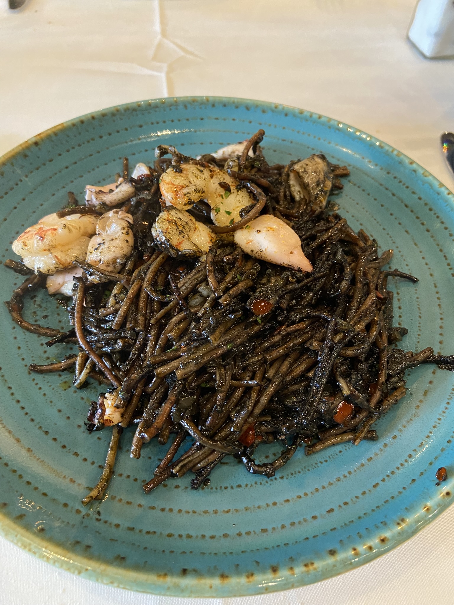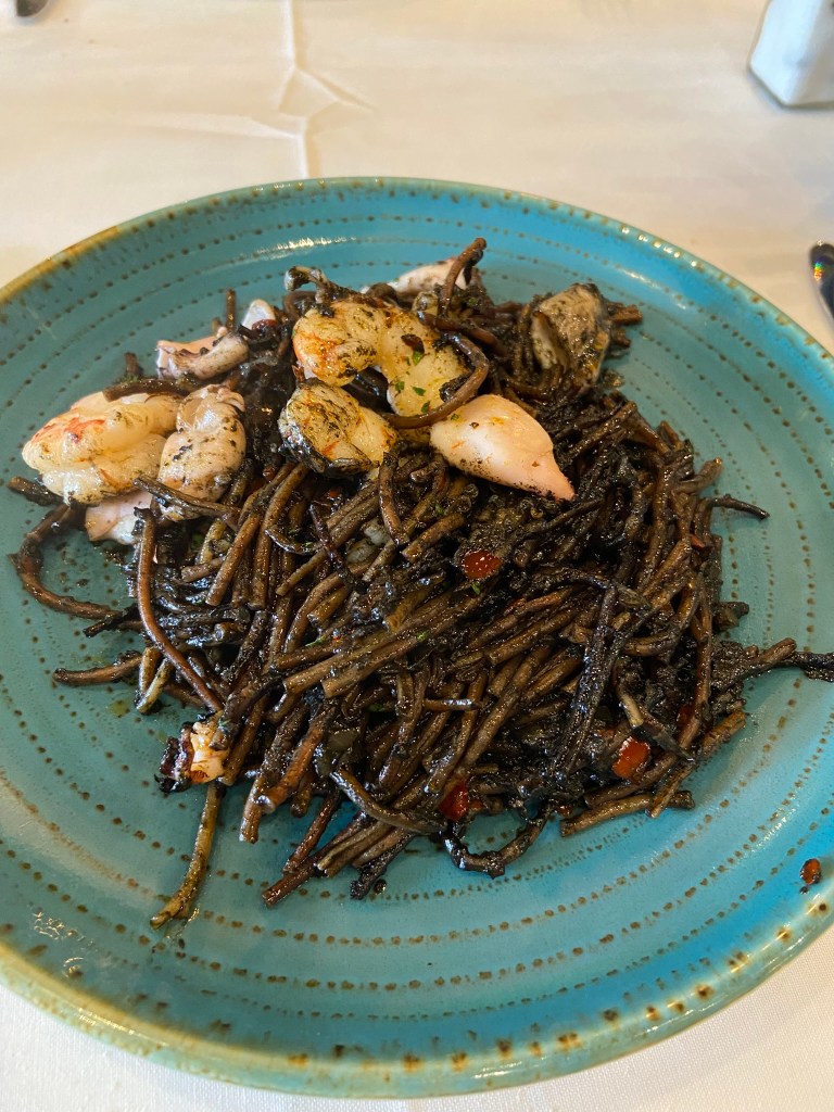 - Logo chegou a hora do almoço. Dessa vez no El Burladero mandamos o fideua com tinta de lula. E como novamente teve de cortesia uma caña e um gazpacho. Teve uma situação curiosa na hora de pagar a conta. Acabei fazendo confusão com as notas e dei 8 mil pesos para o garçom, só que na verdade a conta era 80 mil. Ele voltou assustado e disse algo como “no entendi”. Hahaha. Por um momento achei que estava rico em Buenos Aires.