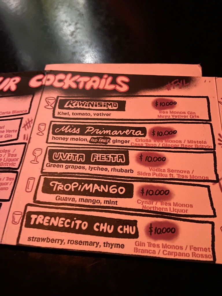 - Bueno. Nos arrumamos e fomos para o muito aguardado bar de drinks chamado 3 Monos. Ele é extremamente conceituado e já foi considerado um dos melhores bares do mundo e o melhor da América Latina. E não dá para acreditar nisso, pois foi uma tremenda decepção. O lugar é extremamente escuro, nada aconchegante e os drinks são caros, com pouco álcool, pouco sabor e com apresentações bizarramente feias. A ideia era ficarmos borrachos no 3 Monos, mas não deu a menor vontade.