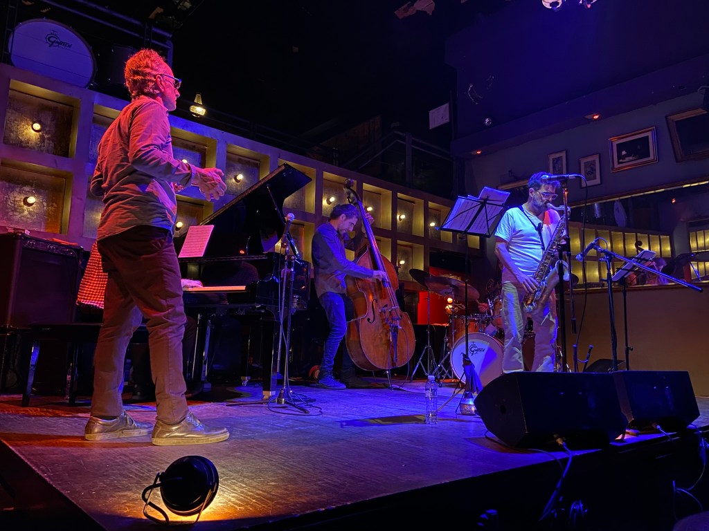 - O jazz não decepcionou. Era uma banda que investia em arranjos um tanto complexos e cerebrais demais, mas com momentos que conseguiam aliar virtuosismo com emoção. Destaque para o cara no contra-baixo e para o do sax, que depois de um solo sinistro pareceu um tanto sem fôlego. Compreensível. Ah e na última música o baterista fez mágica e me lembrou o final de Whiplash. Para registro, degustei um belo de um aperol enquanto assistia ao show. Para mim, jazz combina com campari e suas variações.