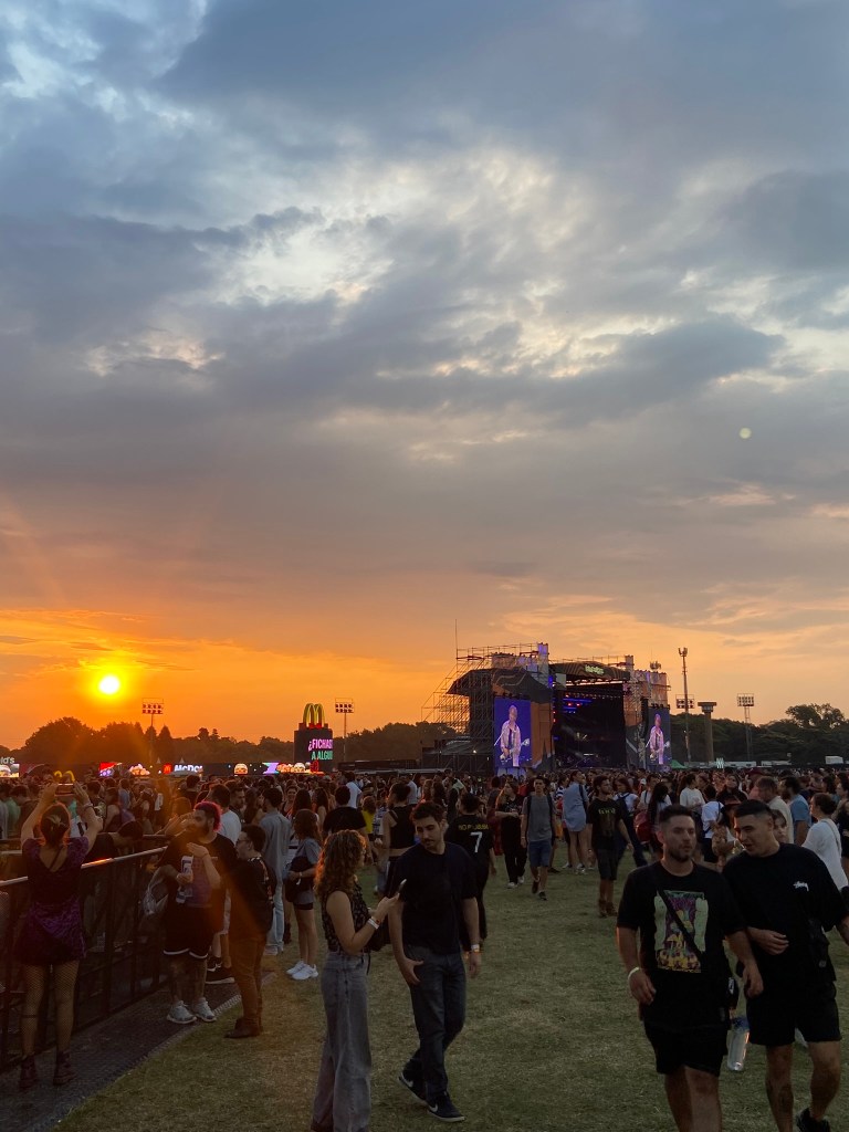 - Ainda havia poucos pessoas no Lolla. Fomos em busca de umas cervejas e descobrimos que há o limite de duas cervejas por pessoa na Argentina. Além disso, existe uma área demarcada para beber. Parece uma medida estranha para nós brasileiros, mas isso aí deve evitar que um monte de gente passe mal.
