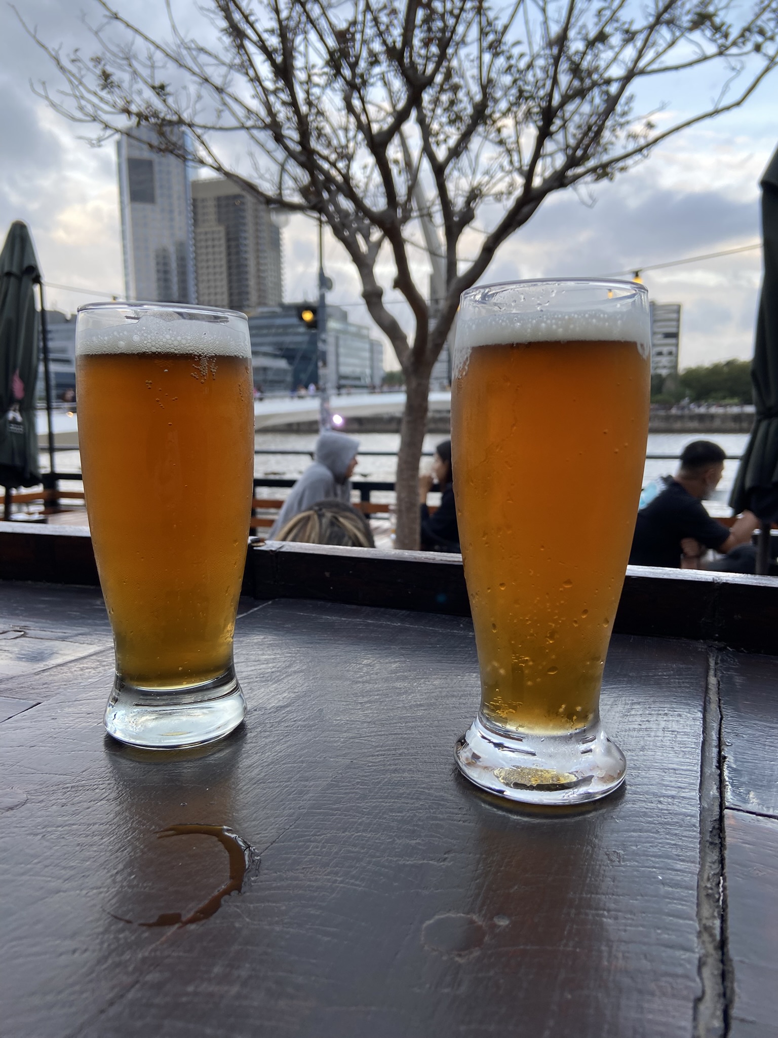 - Para respeitar a tradição sentamos em uma mesa de frente para a Puente de la Mujer no bar El Boleo e pedimos umas cervejas. Ficamos ali um tempo até o apetite estar devidamente aberto para que aproveitássemos o Parrilla Aires Criollos na sequência.