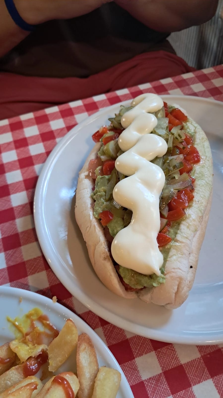 - Descansamos um pouco, tomamos um pouco das cervejas e decidimos ir em busca de um autêntico completo chileno para já chegarmos no festival alimentados. Nesse dia não pretendiamos chegar tão cedo, afinal a banda que realmente queríamos escutar so tocaria lá por 20:00. Para comer o completo fomos no tradicional Lomito e foi uma bela pedida. Cachorro quente com abacate, picles, cebola e tomate sempre vai bem.