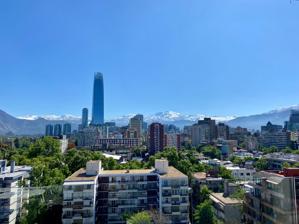- Quando abri as cortinas do quarto vi o sol. Olhei para a esquerda e vi o Cerro San Cristobal com os teleféricos ainda parados. Olhei para direita e vi uma boa quantidade de neve no topo dos Andes. E pensei… poucas cidades são tão bonitas como Santiago.
